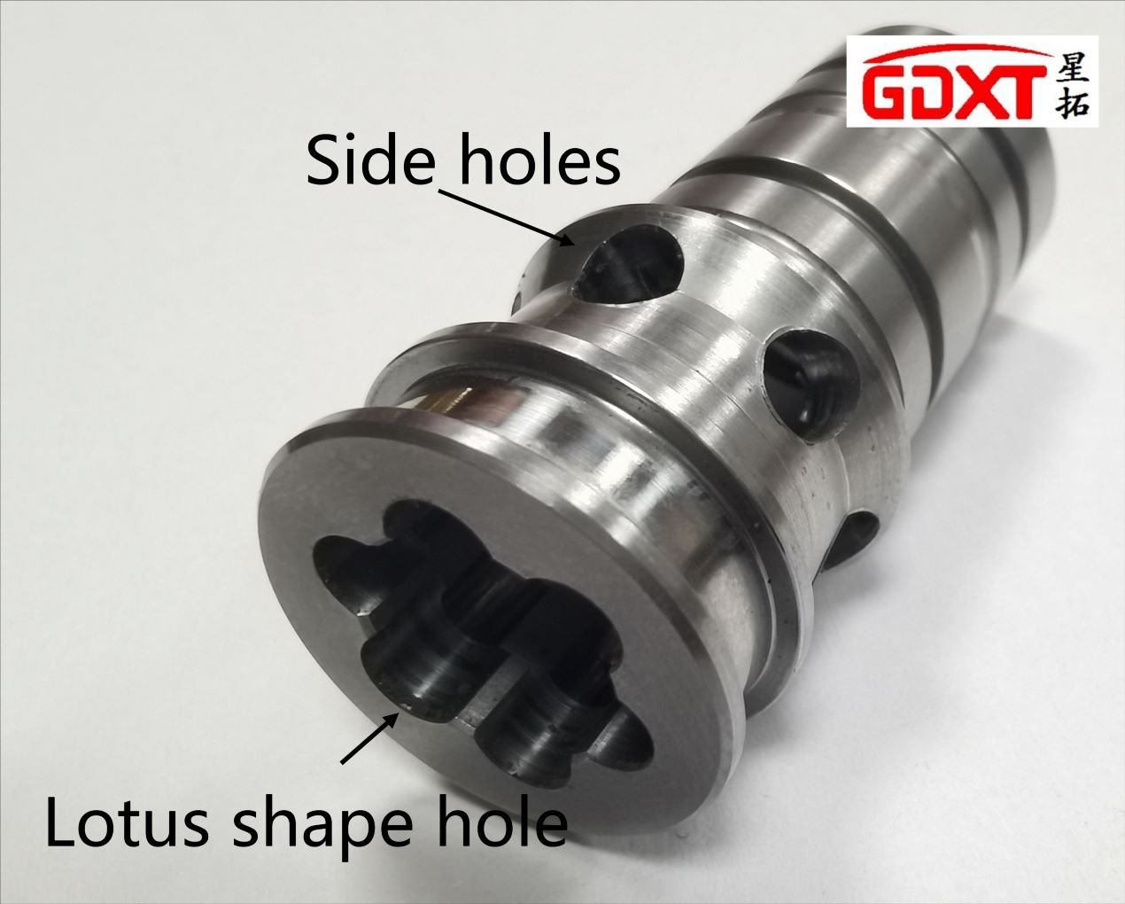 项目内容45# steel, turning and milling 2 in 1 NC lathe processes it. Power drilling unit drill the side holes, power milling units mill the lotus hole, high speed power drilling unit drill the two mini side holes.